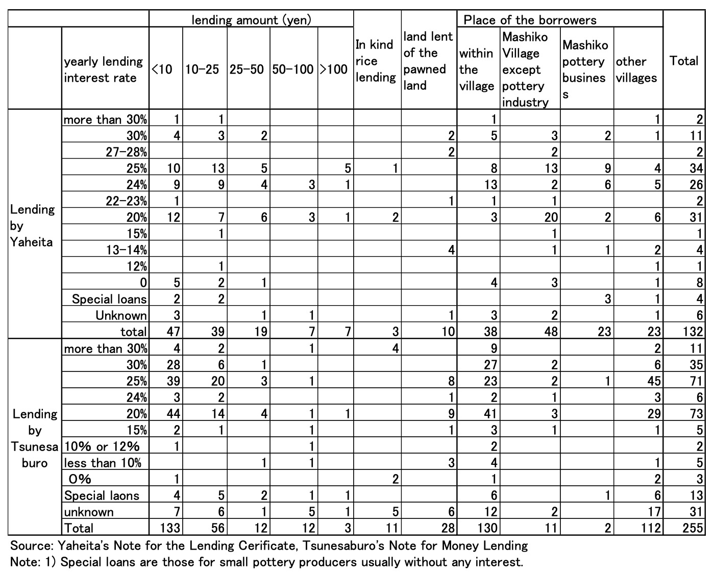 Table 5:Summing up of Lending Activities of the Kato (unit: %, Yen)